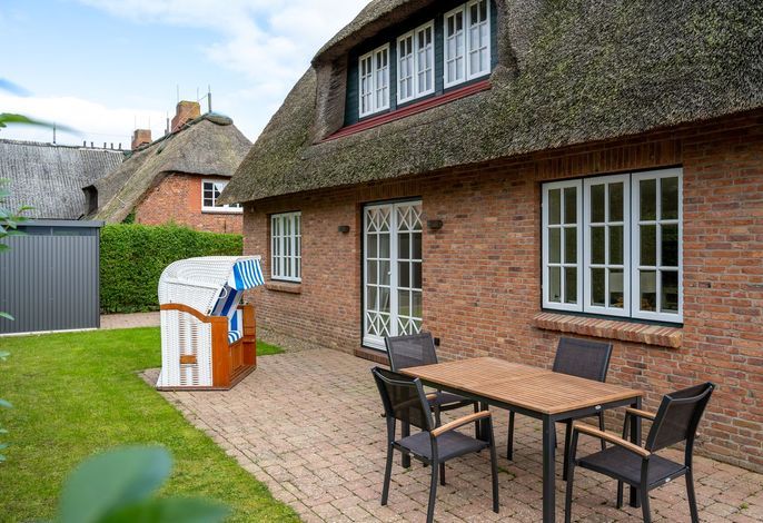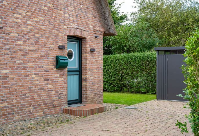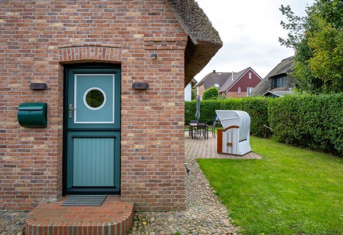 Der großzügige Garten verläuft um das gesamte Ferienhaus und ein bepflanzter Friesenwall grenzt das Grundstück zur anliegenden Straße ab. Eine Unterstellmöglichkeit für Ihre Fahrräder und ein eigener PKW-Stellplatz am Haus runden das Angebot ab.