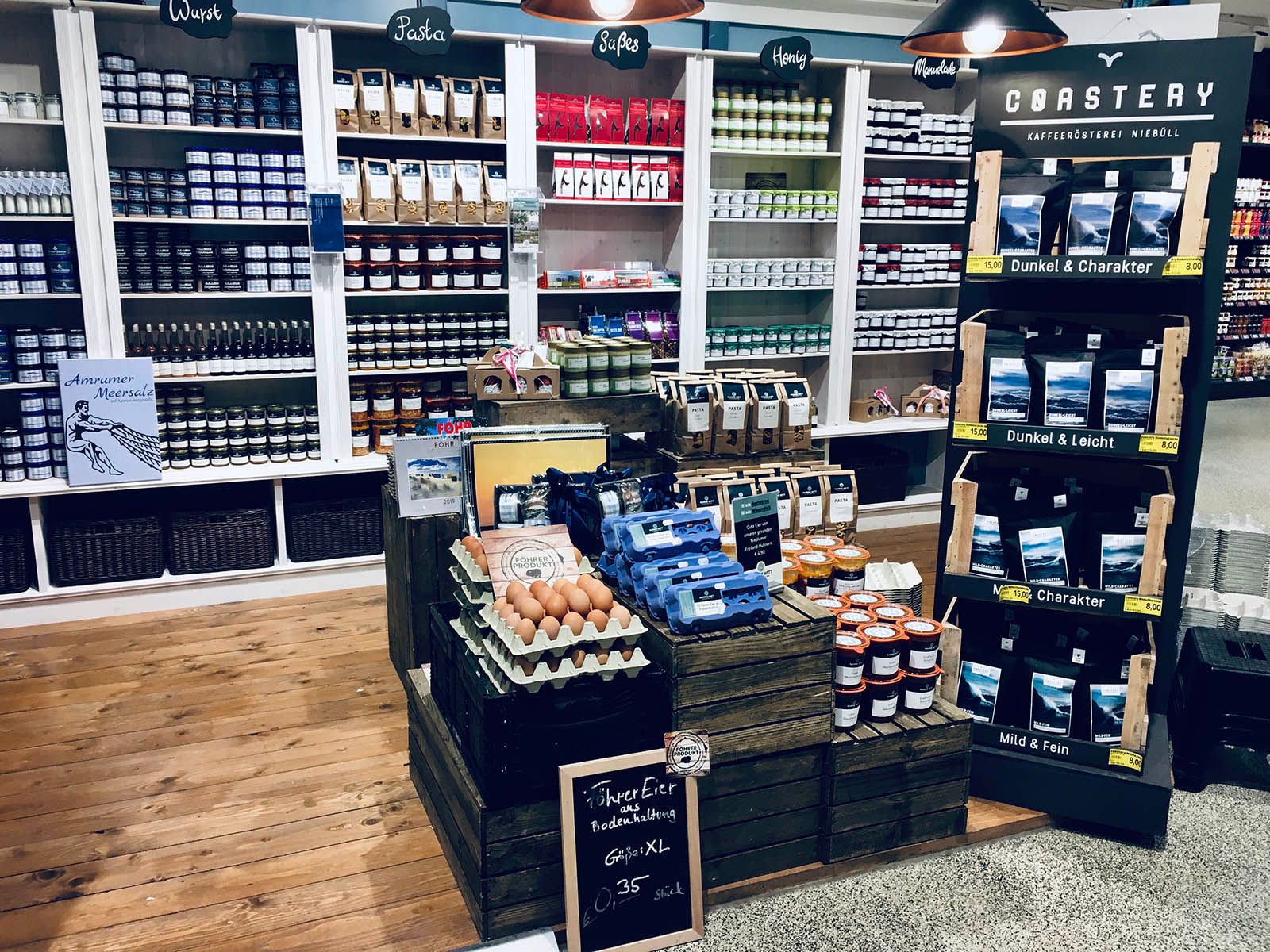 Im Herzen von Wyk finden Sie das ganze Jahr über die täglich frischesten Produkte von Föhr, aus Nordfriesland und Spezialitäten aus Deutschland und der Welt. Insgesamt über 40.000 verschiedene Artikel. Darunter eine komplett gekühlte Obst & Gemüse Abteilung – eine große Bio-, ALNATURA- und Naturkost Auswahl – sowie ein breites Sortiment für die vegane und glutenfreie Ernährung.