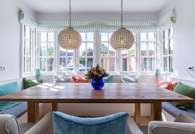 Wohnen Sie im Künstlerdorf Oldsum. Hier wird die Geschichte lebendig, der Walfang, die Seefahrt und die Landwirtschaft prägen den Ort. Ihr Einzelhaus unter Reet liegt eingebettet im Dorfkern und von hier aus haben Sie alle Möglichkeiten, die Insel zu erkunden. Das Haus selber, Emmas Hüs, läßt keine Wünsche offen. Die ganze Familie findet Platz, es gibt einen separaten TV Raum, einen Wohnraum mit Mylin Kachelofen, eine große Küche mit Kochinsel und einen Essbereich mit Gaskamin.