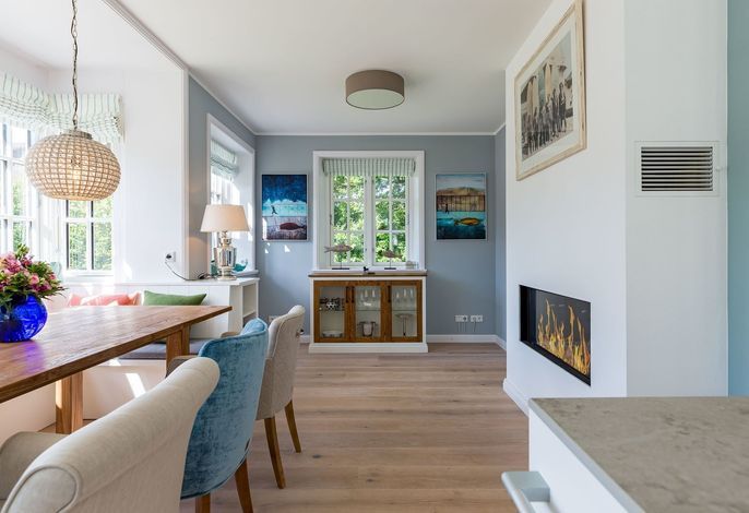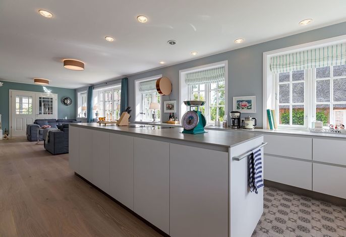 Wohnen Sie im Künstlerdorf Oldsum. Hier wird die Geschichte der Insel lebendig. Walfang, Seefahrt und Landwirtschaft prägten den Ort. Ihr Einzelhaus unter Reet liegt eingebettet im Dorfkern. Von hier aus haben Sie alle Möglichkeiten, die Insel zu erkunden. Das Haus selber, Emmas Hüs, läßt keine Wünsche offen. Die ganze Familie findet Platz, es gibt einen separaten TV Raum, einen Wohnraum mit Mylin Kachelofen, eine große Küche mit Kochinsel und einen Essbereich mit Gaskamin.