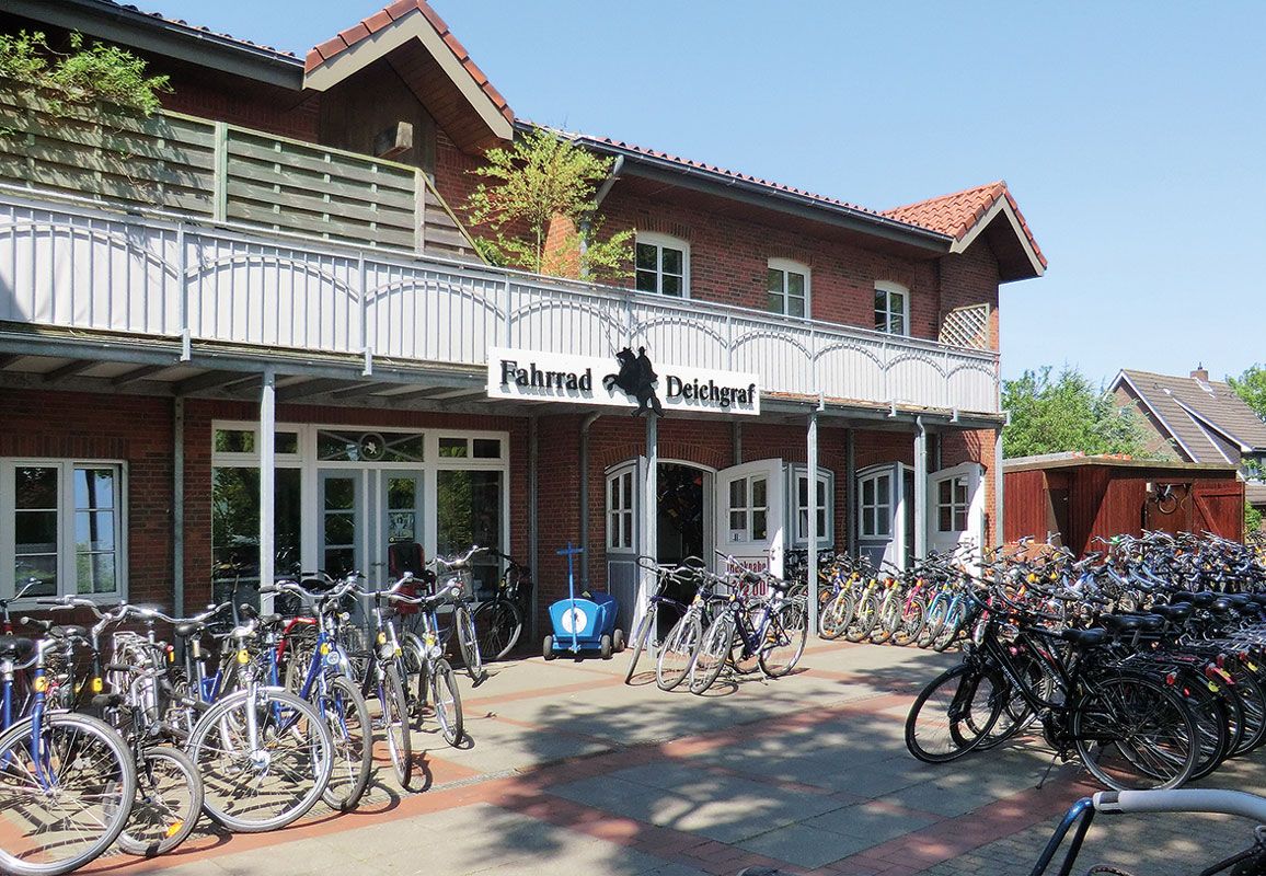 Fahrradverleih Deichgraf bietet Ihnen unter anderem eine große Auswahl an Rädern wie E-Bikes, Touren- und Trekkingräder, Tandems, Tretmobile, Conference Bike. Menschen mit Beeinträchtigungen können Scooter und Rollstühle mieten. Eine kostenlose kleine Fahrradkarte gibt es gratis dazu und für unbeschwerten Fahrspaß sorgt der kostenfreie Pannenservice. Für die ganz Lütten hat der Deichgraf Joggerbuggys und Schiebeautos im Angebot.