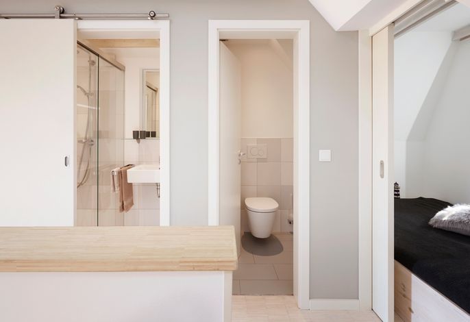 Der Name Family [&] Friends wurde durch die Kinder der Eigentümer ausgewählt. Es ist ein Ort für die gesamte Familie, Freunde und Gäste. Ein geschützter Sitzplatz im Südwesten lädt zum Frühstücken, gemeinsamen Essen oder auch zum Entspannen ein. In der Doppelhaushälfte auf drei Ebenen befinden sich drei Bäder, eine Küche mit angrenzender Essecke, eine Schlafgalerie im Dachgeschoss, zwei Wohnbereiche, ein kuscheliges Alkovenbett, Infrarotsauna und auch ein dänischer Eisenofen fehlt natürlich nicht. Hier verbringen Sie die schönsten Tage des Jahres. Die Lage in direkter Nähe zum Alten Kurpark und zum Strand macht das Haus so beliebt. Mit nur wenigen Schritten gelangen Sie zur Strandpromenade, welche Sie ins Herz von Wyk führt.