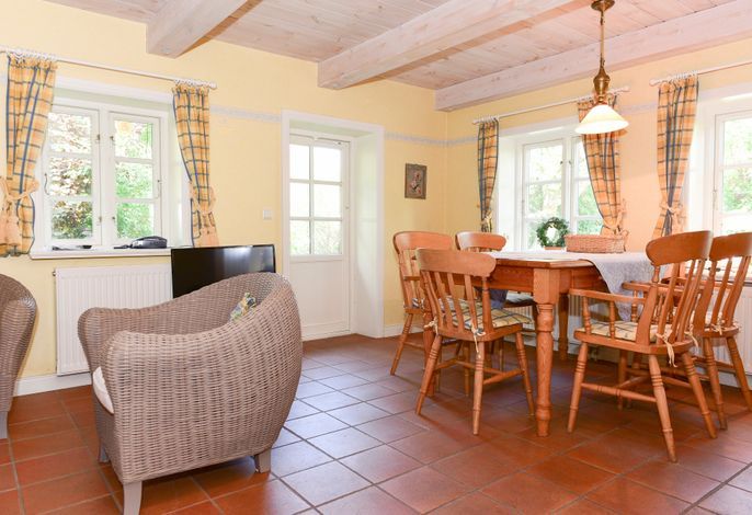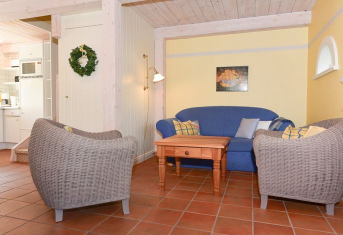 Genießen Sie Ihren Urlaub in unserem einladenden Wohnbereich mit einer gemütlichen Sitzecke und einem Essbereich mit ausreichend Platz - perfekt für entspannte Stunden mit Familie oder Freunden.