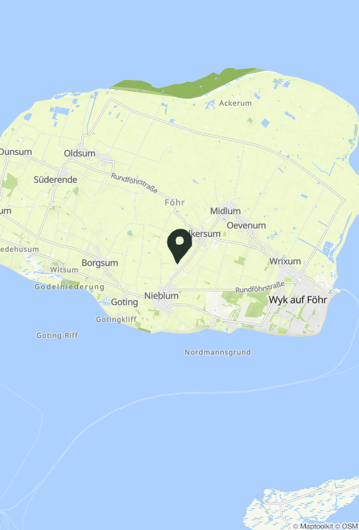 Die Ferienanlage Landliebe ist in einer ruhigen Seitenstraße zwischen den Orten Nieblum und Alkersum gelegen und somit ein guter Ausgangspunkt für ausgiebige Fahrradtouren, um die Insel zu erkunden.