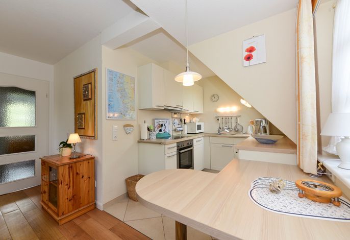 Hier erwartet Sie eine gemütliche Ferienwohnung im Obergeschoss des Hauses, nur wenige Schritte vom Strand entfernt. Starten Sie Ihren Tag mit einem Besuch beim Bäcker oder einem Spaziergang zum nahegelegenen Lebensmittelladen.