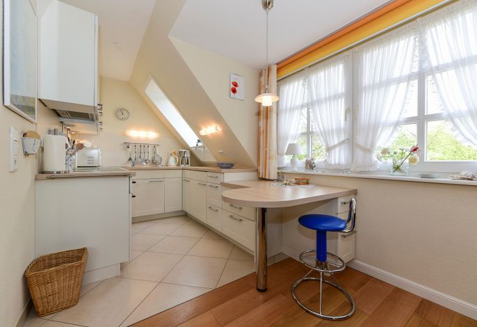 Die moderne Küche, welche direkt vom Wohnzimmer abgeht, ist komplett ausgestattet, sodass Sie Ihre Lieblingsgerichte ganz nach Belieben zubereiten können.