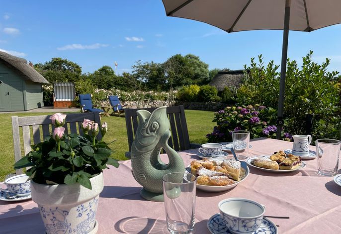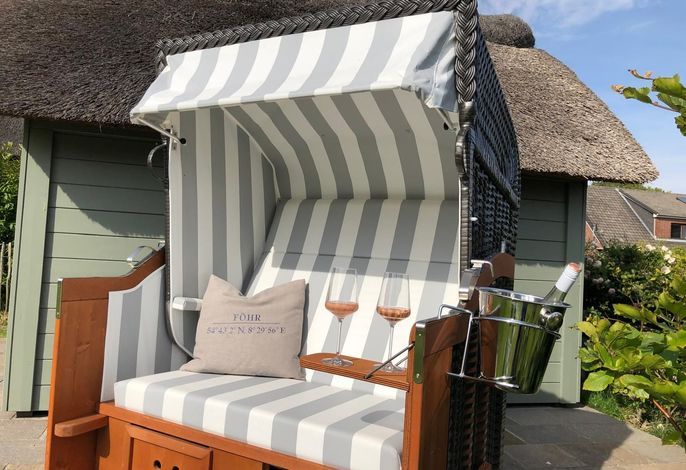 Der liebevoll angelegte Garten lädt bei herrlicher Ruhe zum Entspannen ein und verfügt über drei Terrassen, so dass man immer einen Sonnenplatz findet. Hochwertige Gartenmöbel, Sonnenliegen sowie ein Strandkorb stehen unseren Gästen zur Verfügung. Ein Parkplatz vor dem Haus ist selbstverständlich ebenfalls vorhanden.