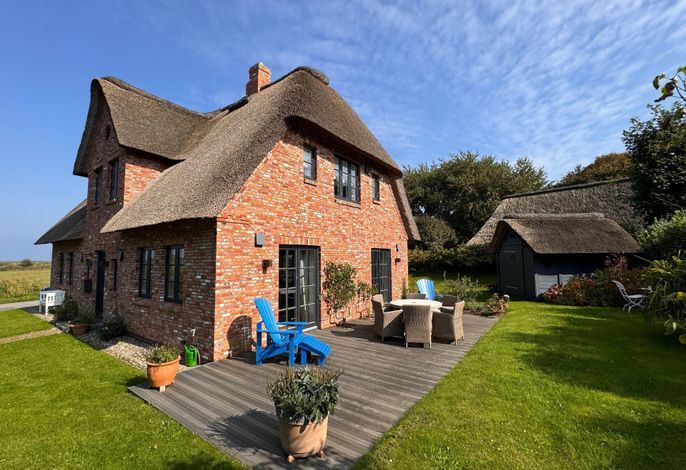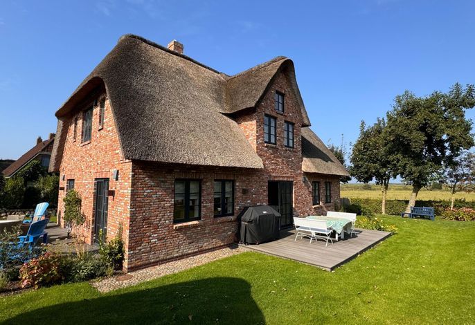 Das schöne Friesenhaus liegt im Künstlerdorf Oldsum. Die attraktive Lage an der Oldsumer Marsch sowie die kurze Entfernung zum historischen Ortskern mit seinen Cafés, kleinem Supermarkt und Läden, ist der perfekte Ausgangspunkt.