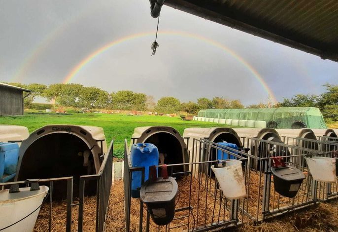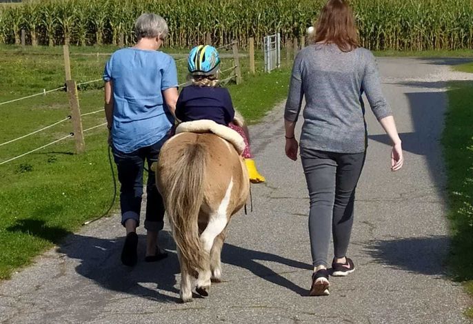 Milchviehbetrieb mit Kühen und Kälber haben wir Hunde, Katzen, ein Kaninchen und ein Pony. Im Garten gibt es Sitzecken und