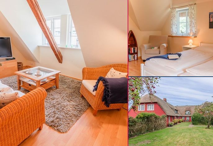 Die reetgedeckte Ferienwohnung Alkoven verfügt über 2 Schlafzimmer und 2 Bäder und bietet somit komfortabel Platz für bis zu 4 Personen zuzüglich einer Kleinkinderaufbettung.