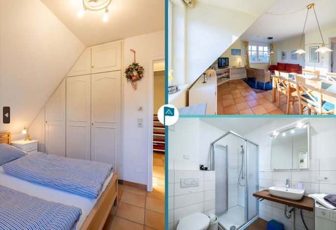Die Ferienwohnung Brise präsentiert sich als ein mit viel Liebe eingerichtetes Refugium, das durch seine moderne und helle Ausstattung zu jeder Jahreszeit zu einem erholsamen Urlaub einlädt. Auf großzügigen 62 qm Fläche stehen Ihnen ein Flur mit Garderobe, ein Schlafzimmer mit einem komfortablen Doppelbett, ein ansprechendes Duschbad, eine offene Einbauküche und ein großzügiger Wohn-Essbereich zur Verfügung.