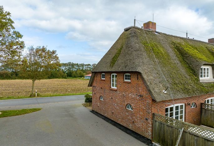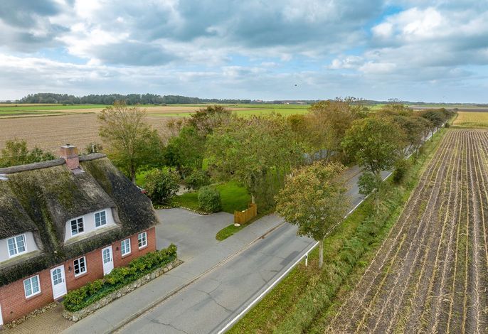Koppel mit Unterstand für 3 Pferde und Selbsttränke. Kein Rauh- (Heu) oder Kraftfutter (Hafer) vor Ort. Hafer und sonstiges Pferdefutter gibt es in Alkersum zu kaufen. Vorab können Sie bei verschiedenen Adressen auf der Insel Heu vorbestellen.