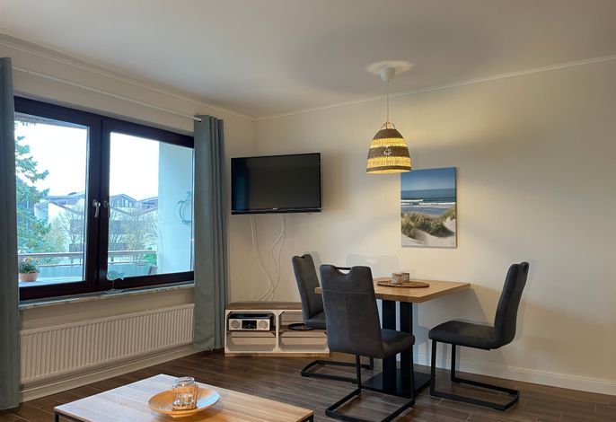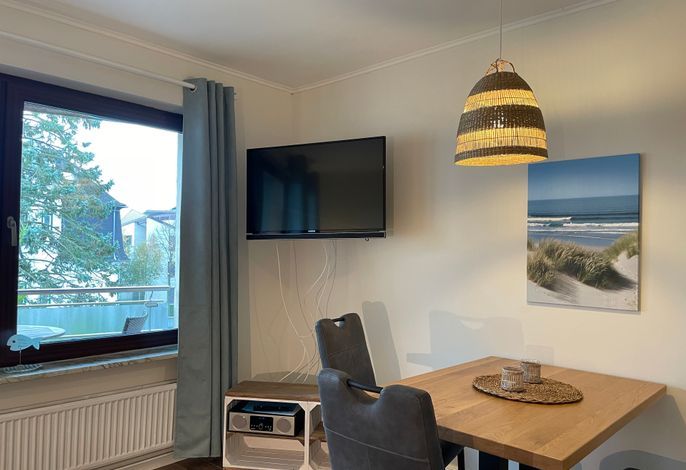 Das Kinderzimmer ist mit einem komfortablen Einzelbett ausgestattet und verfügt über ein Oberlicht sowie ein kleines zum Flur ausgehendes Fenster. Das Badezimmer ist funktional mit einer Badewanne, WC und einer Lüftung ausgestattet. Im hellen Wohnraum können Sie sich wohlfühlen und gemeinsam Kochen, Spielen, Relaxen. WLAN, Radio und ein Fernseher sorgen für Unterhaltung. Abends lässt sich die Couch mit wenigen Handgriffen in eine komfortable Schlafgelegenheit umwandeln. Vom Wohnraum aus gelangen Sie auf den sonnigen Südbalkon, der perfekt ist, um die warmen Stunden im Freien zu genießen. Die Wohnung ist komplett rauchfrei. Entdecken Sie gleich, Ihr Feriendomizil auf Föhr- Bilder sagen mehr als Worte, also machen Sie sich gleich Ihren ersten Eindruck.