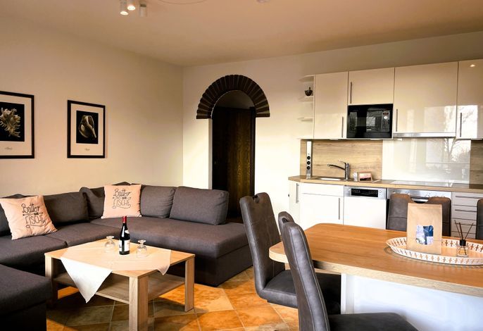 Entdecken Sie unsere geräumige Ferienwohnung 5 im Fischerhuus - ein perfektes Zuhause auf Zeit für bis zu fünf Personen. Mit 63 m² bietet diese Wohnung ausreichend Platz für Familien, die Wert auf Komfort und Gemütlichkeit legen.