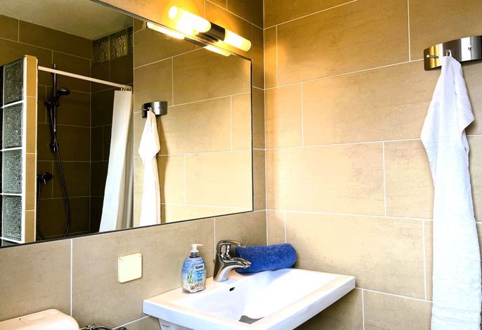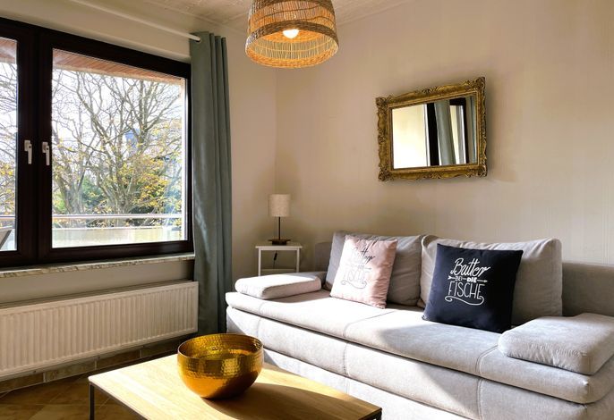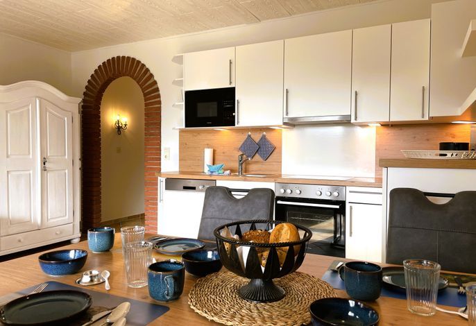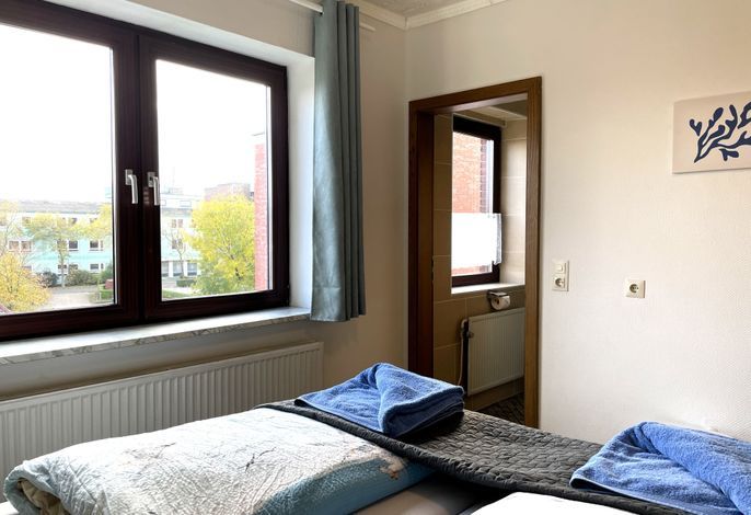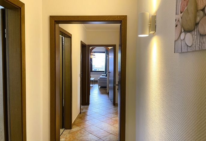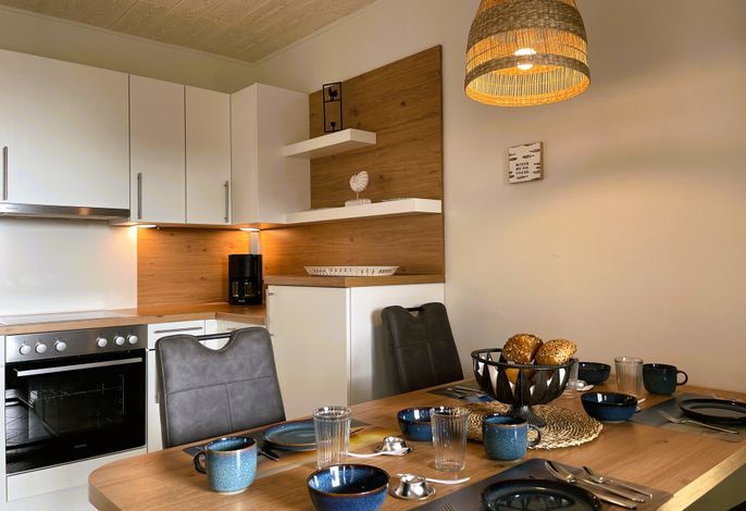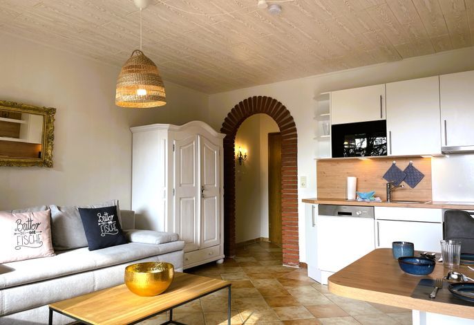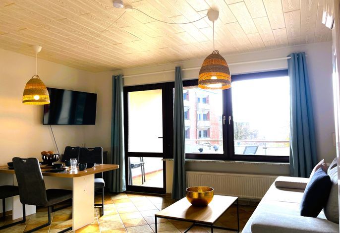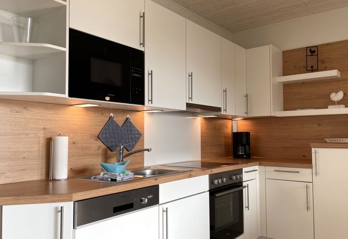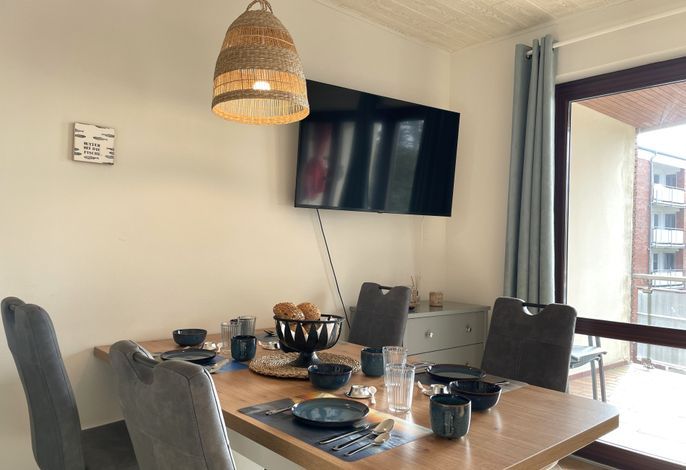 Die Wohnung 9 in unserem Fischerhuus bietet reichlich Platz für bis zu 5 Personen. Vom Flur aus gelangen Sie zu den beiden Schlafzimmern, dem Wohnschlafraum und dem Bad mit Badewanne. Der helle Wohnraum ist großzügig und lichtdurchflutet. In der gut ausgestatteten Küchenzeile mit Backofen, Geschirrspüler, Mikrowelle und Kühlschrank macht das Kochen Freude. Bereiten Sie typisch nordfriesische Fischgerichte zu und genießen Sie Ihre Mahlzeiten am großzügigen Essplatz. Die gemütliche Sitzecke lädt zum Relaxen ein und Sie können den Tag gemütlich mit einem Fernseh- oder Spielabend ausklingen lassen. Ruhige Nächte versprechen die beiden Schlafräume. Das Kinderzimmer ist mit einem Etagenbett und einem Einzelbett (90 x200 cm) ausgestattet, während der Elternschlafzimmer über ein bequemes Doppelbett verfügt und ein eigenes en-Suite Bad hat, dass mit einer Dusche ausgestattet ist. Sonnenstunden können Sie bei gutem Wetter auf dem geschützten Balkon erleben und die frische Nordseeluft genießen.