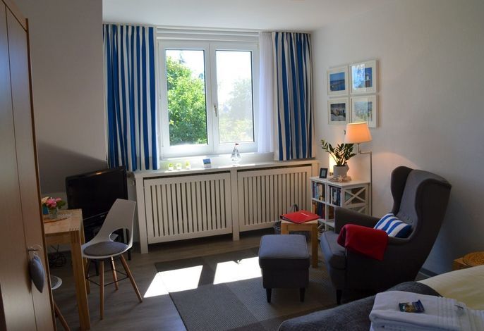 1 - Zimmer-Wohnung für eine PersonenDas Haus Flurstrasse liegt ruhig und zentrumsnah in grüner Umgebung. Von der Wohnung aus erreichen Sie in wenigen Minuten die Innenstadt und Einkaufsläden. Auch der beliebte Wyker Südstrand...