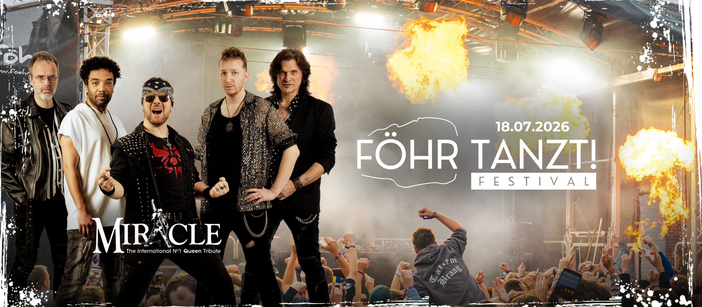 Zwei absolute Highlights des Rock treffen aufeinander: Miracle, eine der authentischsten Queen-Tribute-Bands Europas, bringt den legendären Queen-Sound in all seinen Facetten live auf die Bühne – ganz ohne Kitsch, aber mit höchster musikalischer Präzision und Leidenschaft. Unterstützt von Musikern aus Produktionen wie We Will Rock You, lässt Miracle die goldenen Jahre von Queen aufleben.