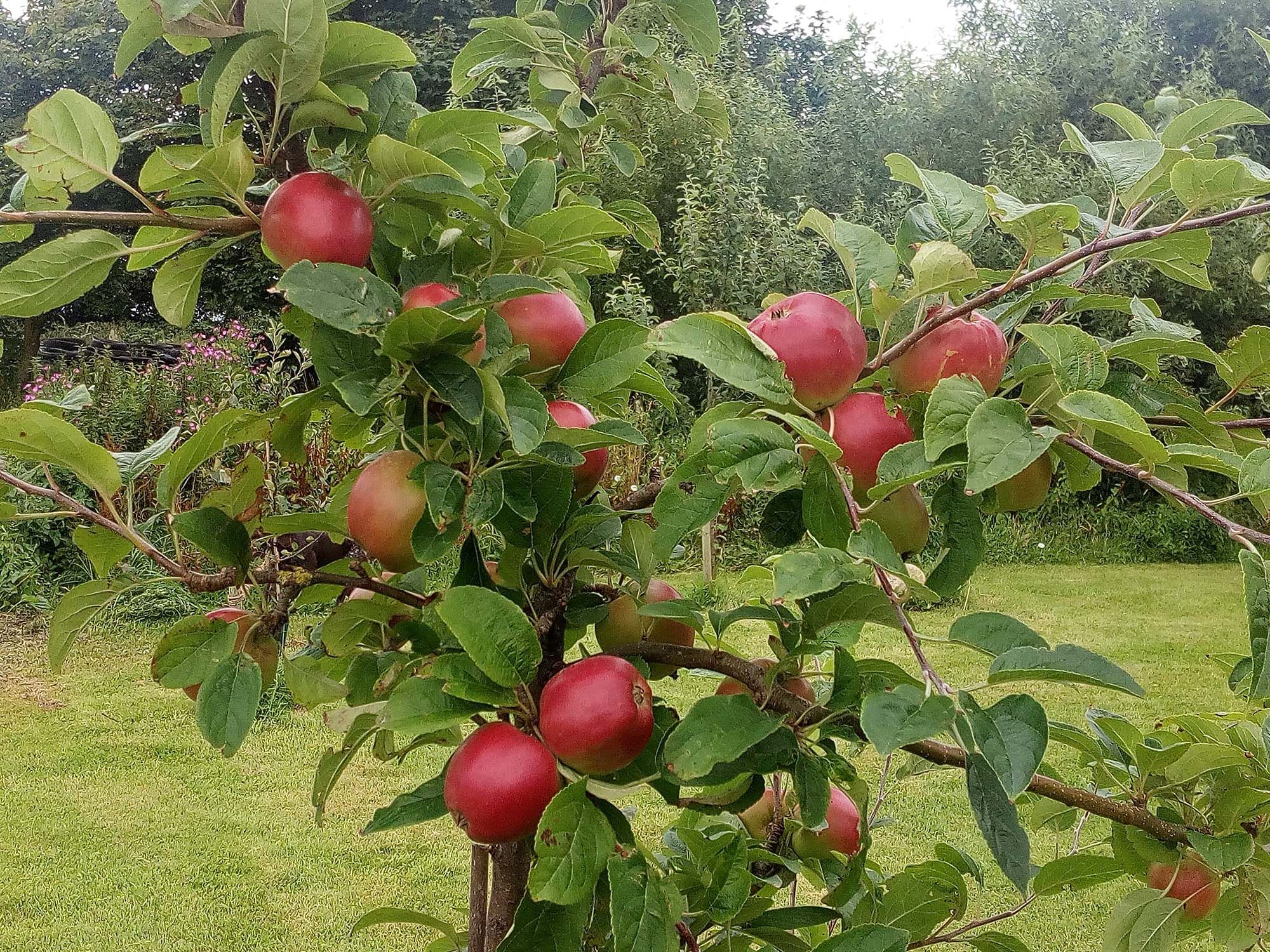 Es begann ganz klein für die Eigenversorgung mit Obst aus dem eigenen Garten. Aus einer relativ kleinen Streuobstwiese, die 2014 ihren Anfang mit ca. 25 gepflanzten Obstbäumen fand, sind inzwischen zwei große Obstwiesen mit ca. 220 Bäumen geworden. Es finden sich größtenteils Bäume mit alten, heimischen Apfel- und Birnensorten wie z.B. Ingrid Marie, Finkenwerder Herbstprinz, Jonathan, der Altländer Pfannkuchen, der Klarapfel oder auch die Bürgermeisterbirne. Inzwischen gibt es ca. 40 verschiedene Sorten. Aber auch Kirschen, Mirabellen, Reneclauden, Stachel-, Him- und Brombeeren sind zu finden.