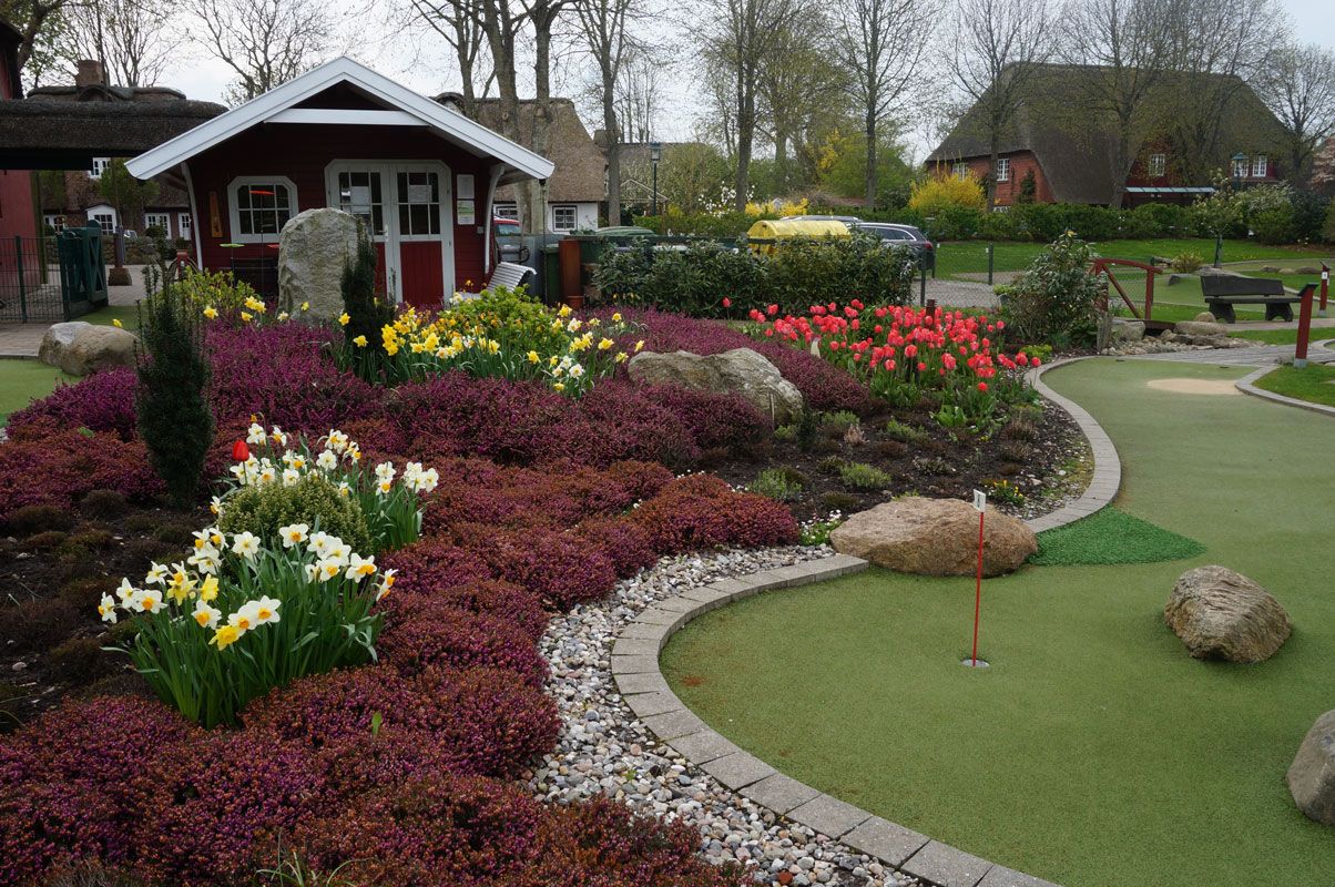 Ein Freizeitvergnügen für Jung und Alt bietet Föhrer SpielGolf in schöner Parkanlage direkt im Herzen von Nieblum gegenüber der Tourist-Information.