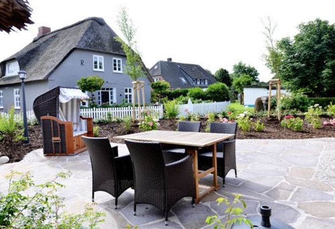 Eine separate [nbsp]Terrasse mit Strandkorb und Gartenmöbeln sowie ein eigener Gartenl bieten Ruhe und Entspannung.
