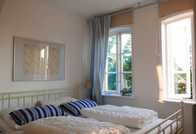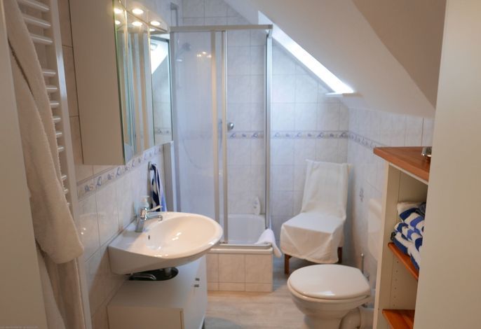 Die 3-Zimmer Ferienwohnung ist für 4 Personen gut geeignet. Es erwarten Sie eine komfortable Einrichtung im Wohnzimmer, ein Schlafzimmer mit Doppelbett und Abstellplatz, sowie ein zweites Schlafzimmer mit zwei Einzelbetten. Die Wohnung ist mit einem hell gefliesten Duschbad ausgestattet. Erleben Sie Gemeinsamkeit und gemütliche Augenblicke im Wohnbereich mit direktem Ausgang auf den Westbalkon. Die komfortable Küche verbindet Koch- und Essbereich in einem.