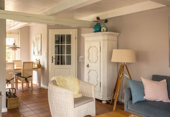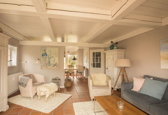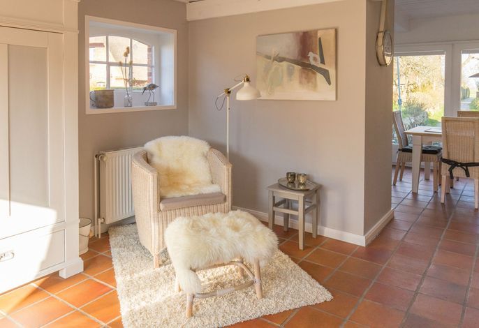 Willkommen im gepflegten Endhausteil Foftein in Borgsum auf Föhr. Im Nordwestgiebel des reetgedeckten Hauses mit mehreren Hausteilen erwartet Sie eine großzügige Unterkunft über zwei Etagen mit separatem Eingang und eigenem...