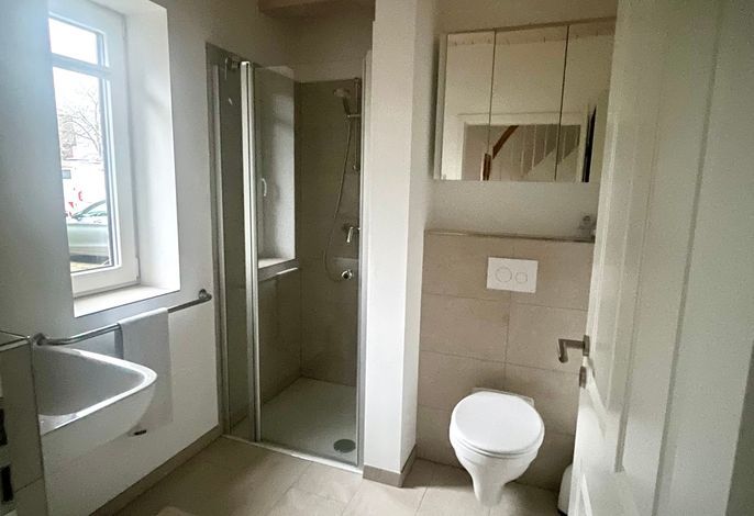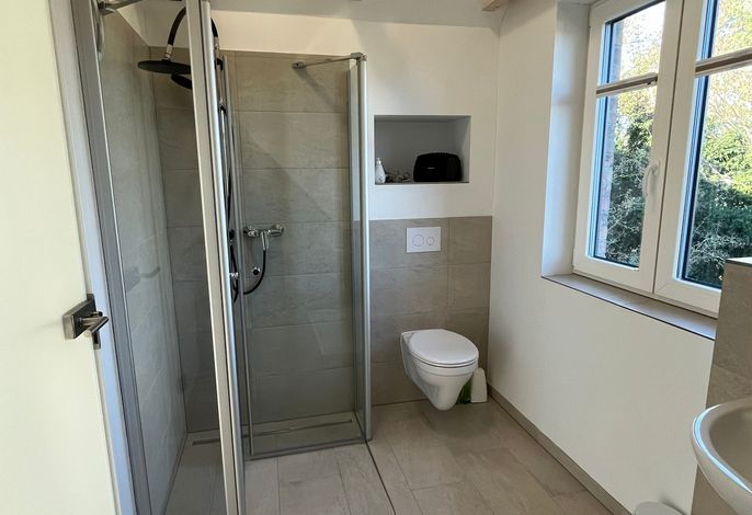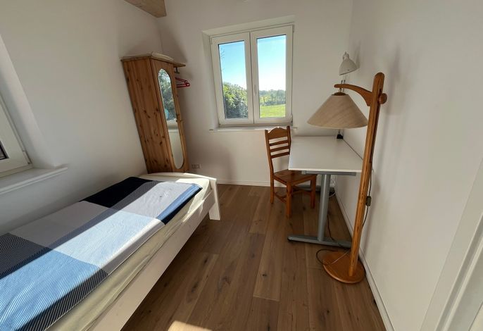 Im Obergeschoss befindet sich ein großes Zimmer mit Doppelbett sowie ein separates Bad.