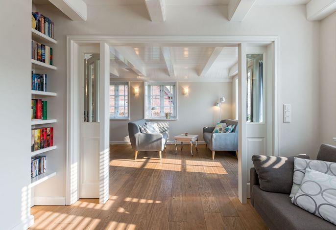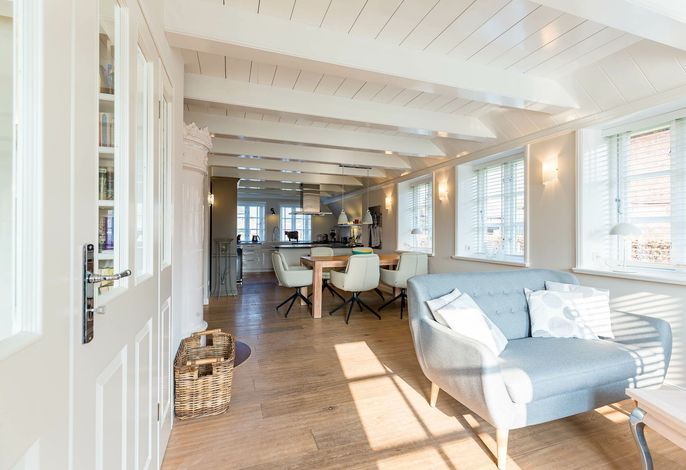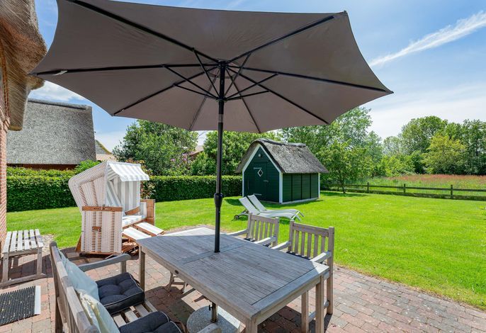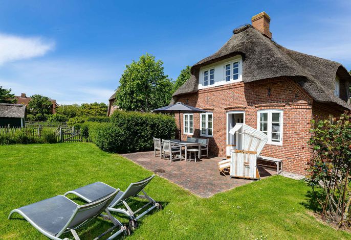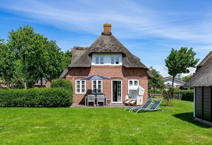 Herzlich Willkommen in unserem neuem Feriendomizil in ländlicher Idylle von Oldsum. Das Friesenhaus ist mit viel Liebe im traditionellen inseltypischen Baustil direkt am gewachsenen Ortskern entstanden. Ein typischer Friesenwall, Linden und Obstbäume rahmen das Kleinod ein und lassen jede Hektik und Stress vergessen. Auch im Haus zeigt sich die alte friesische Bauweise mit Balkendecken, schönen Holzarbeiten und traditionellen Details, jedoch mit neuester Technik wie Fußbodenheizung und großzügiger, exklusiver Ausstattung. Genießen Sie den Aufenthalt in der 130 qm großen Friesen-Kate ebenerdig und unter dem gemütlichen Dach des Hauses mit bis zu 5 Personen. Nutzen Sie den großen, eingezäunten Sommergarten mit Blick in die herrliche Natur und auf das Reet gedeckte Friesendorf.