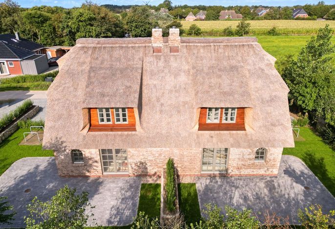 Die reetgedeckte Ferienhaushälfte Friesenfrühling verfügt über 2 Schlafzimmer, 2 Bäder und 1 Gäste-WC und bietet somit komfortabel Platz für bis zu 4 Personen zuzüglich einer Kleinkinderaufbettung.