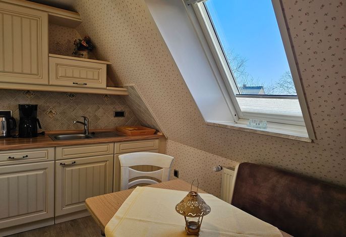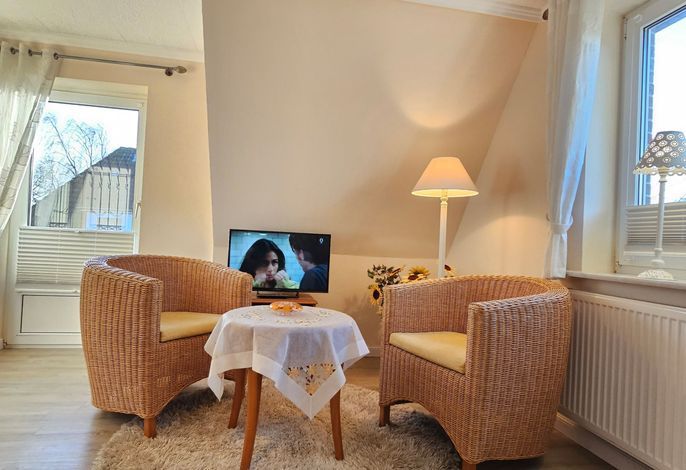 Der Friesenweg befindet sich nur wenige Minuten vom Zentrum und vom Strand in Wyk entfernt - und liegt dennoch absolut ruhig. Auch ein Urlaub ohne Auto ist bei den geringen Entfernungen kein Problem. Die Wohnung Friesenperle befindet sich im OG mit 2 Balkonen und ist sehr schön im Landhausstil eingerichtet. 2 Personen sind hier bestens aufgehoben. Für Ihre Fahrräder gibt es eine abschließbare Garage zur gemeinsamen Nutzung.