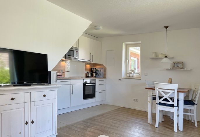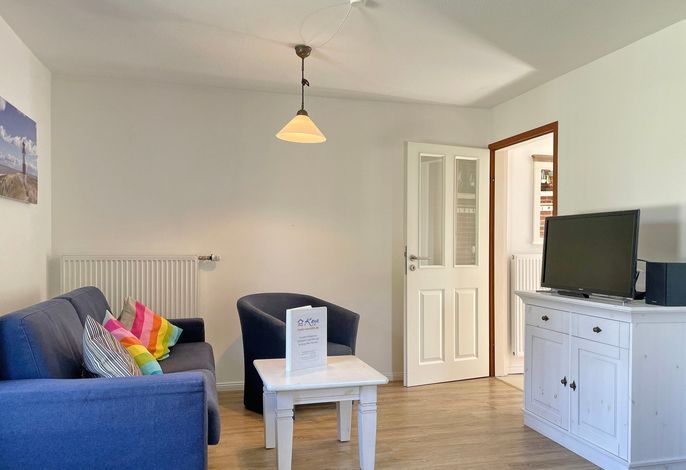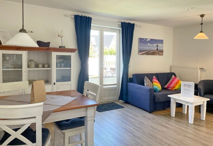 Umgeben von Grün,inmitten eines schönen Gartens mit Spielgeräten steht das Haus Friesenstern mit 2 Wohnungen. Über kurze Wege erreichen Sie die Innenstadt, die Strandpromenade mit ihren vielen Cafes und Boutiquen sowie den Strand. Die Wohnung 2 im Anbau zeichnet sich durch einen hellen Flur aus von dem man ins Bad gelangt. Dort befindet sich auch eine Waschmaschine. Weiter gelangt man in einen modernen Wohn-Essbereich mit einer ebenfalls sehr gut ausgestatteten Küchezeile und einem direkten Zugang zur eigenen Terrasse und dem Garten. Im Obergeschoss befindet sich ein Schlafzimmer mit Doppelbett(1,80x2,00m) sowie einem Alkovenbett (90 x 190cm) für ein Kind. Auf dem großen Waldspielplatz Löwenhöhle oder im Friesenmuseum gleich in der Nachbarschaft finden Klein und Groß Spaß und Interressantes über die grüne Insel. Haupthaus und Anbau sind sehr kinderfreundlich gestaltet und laden zu einem entspannten Urlaub auf unserer grünen Insel ein.