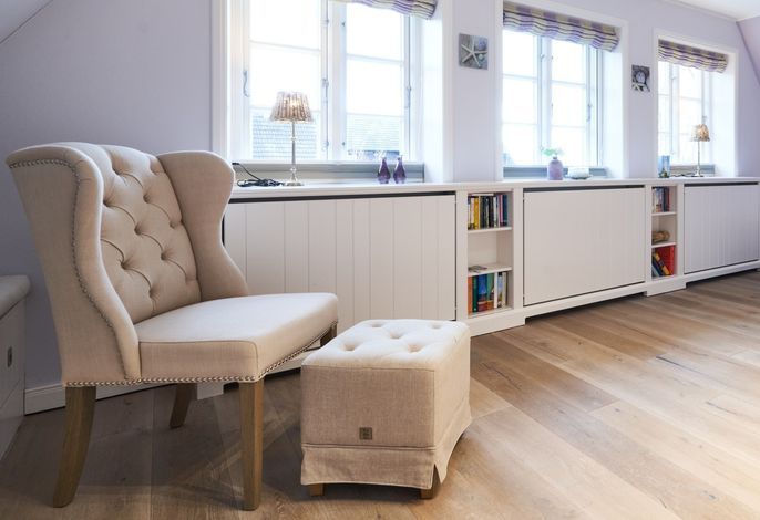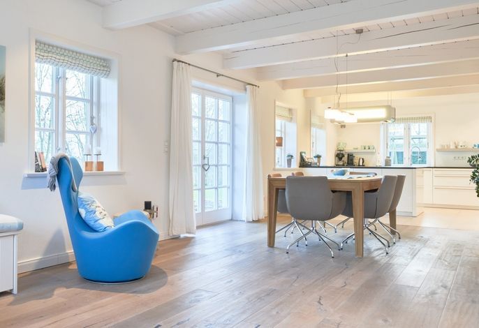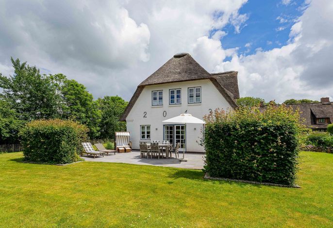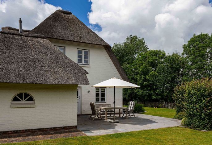 Ein exklusives Friesenhaus mit Reetdach und schöner Architektur erwartet Sie. Der Mix aus dem ursprünglichen friesischem Stil findet sich in kleinen Details in der hochwertigen und modernen Ausstattung wieder. Ob edle Holzfußböden aus Eiche, Natursteinfliesen oder die Holzeinbauten - hier ist alles auf den Punkt gebracht. Das macht den Charme und auch die Exklusivität des Hauses r großzügige Garten mit Terrasse und die traumhafte Randlage mit Blick in die Marsch bieten Ihnen ein Umfeld, wie Sie es auch auf der Insel Föhr nicht oft wiederfinden. Hier in Oevenum werden Sie gelassen und entspannt Ihren Urlaub verbringen...und sollten Sie den Trubel Wyks vermissen - in nur wenigen Fahrradminuten sind Sie am Sandwall und genießen das bunte Treiben in den Geschäften und Cafes..