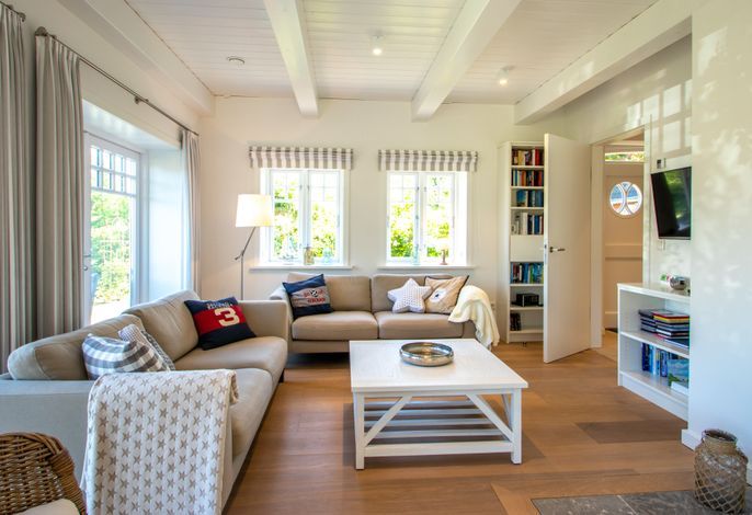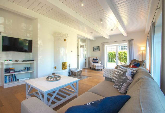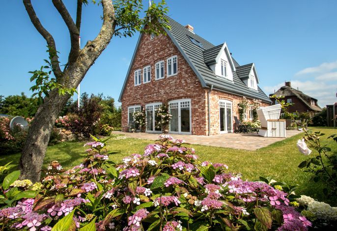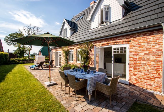 Im sonnigen Garten in Südwestausrichtung findet jeder sein Lieblingsplätzchen. Die große Terrasse ist mit Gartenmöbeln und Strandkorb (während der Saison) ausgestattet. Für Ihre Fahrräder finden Sie einen Parkplatz neben dem Gartenhäuschen.