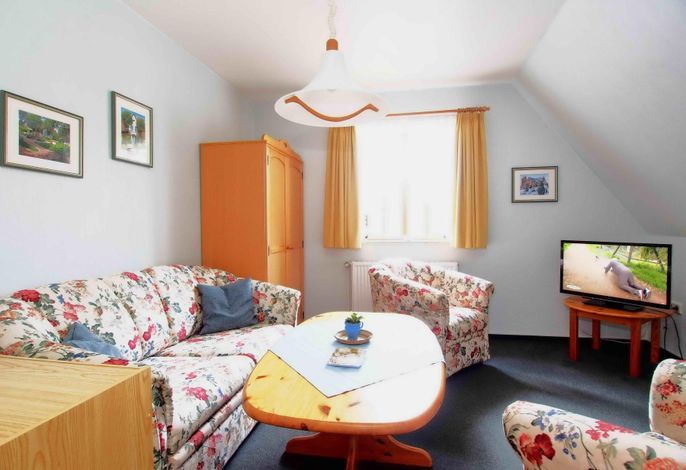Unser komfortables 2-Zimmer-Appartement hat ca.36 m² und bietet Platz für bis zu 2 Personen. Es ist sehr geschmackvoll eingerichtet. Darüber hinaus finden sie hier eine Radio und ein TV. Die Küchenzeile ist ausgestattet mit Kühlschrank, 4-Plattenceranherd, Backofen, Geschirrspüler, Kaffeemaschine, Wasserkocher und Toaster.
