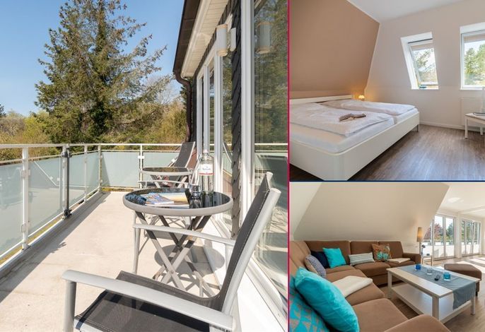 Die Ferienwohnung 3 überzeugt durch den großen, kombinierte Wohn-Essbereich mit der komplett ausgestatteten, integrierten Küche. Von hier aus haben Sie auch einen direkten Zugang auf den Balkon. 2 Schlafzimmer sowie 2 mit Fußbodenheizung versehene Duschbäder ergänzen das Wohlfühlklima. Die moderne Ausstattung der Wohnung wird Sie überzeugen, ebenso wie der große Smart-TV im Wohnbereich. Ein Flachbildfernseher ist auch in einem der beiden Schlafzimmer vorhanden.