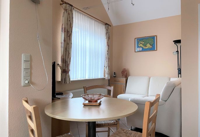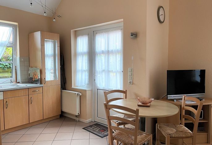 Unser Gartenhaus ist ein kleines, gemütliches Häuschen im Erdgeschoss (ca. 45 qm), dass sich in zweiter Reihe befindet und somit trotz der zentralen Lage reichlich Privatsphäre besitzt. Das gesamte Haus ist gefliest und wurde von der Eigentümerin liebevoll und praktisch zugleich eingerichtet, damit Sie sich wohlfühlen können. Der offen gestaltete Wohnbereich mit einer gut ausgestatteten Küche, einer zentralen Essgruppe und der bequemen Sitzecke ist der Mittelpunkt des Häuschen. Das Badezimmer verfügt über eine Dusche mit sehr flachem Einstieg und besonders schön ist hier, dass das WC separat liegt. Die beiden Schlafzimmer sind hell und ansprechend. Eines verfügt über ein Doppelbett und das andere über ein Einzelbett, so dass sich unser Gartenhaus ideal für 2 Personen oder eine kleine Familie eignet, die entspannte Urlaubstage erleben möchten. Die Terrasse mit Gartenmöbeln (ca. von April bis Ende September) lädt bei gutem Wetter zum Sonnen und Relaxen ein. Gerne dürfen Sie Ihren Hund mitbringen. Wir freuen uns auf Ihren Besuch!
