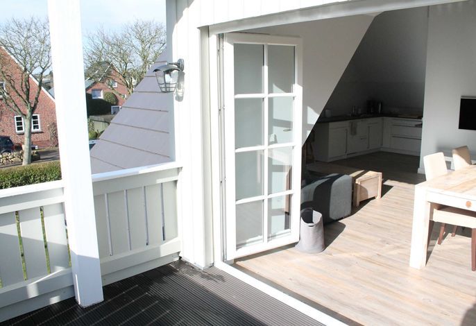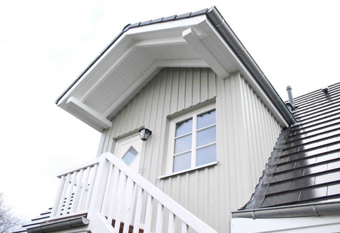Das Dachgeschoss wurde in 2014 in Holzbauweise neu errichtet, so entstanden zwei Wohnungen mit jeweils separatem Eingang. Die obere Ferienwohnung ist über eine Außentreppe separat zugänglich. Sie ist schön eingerichtet, bietet mit 55 m² und zwei separaten Schlafzimmern ausreichend Platz und ist eine ruhige Basis für Ihren entspannten Föhr-Urlaub. Außerdem ist ein PKW-Stellplatz sowie die Abstellmöglichkeit für Fahrräder vorhanden.