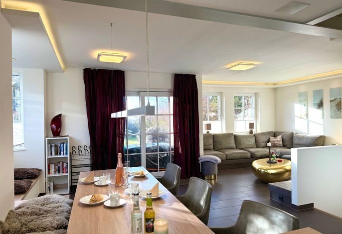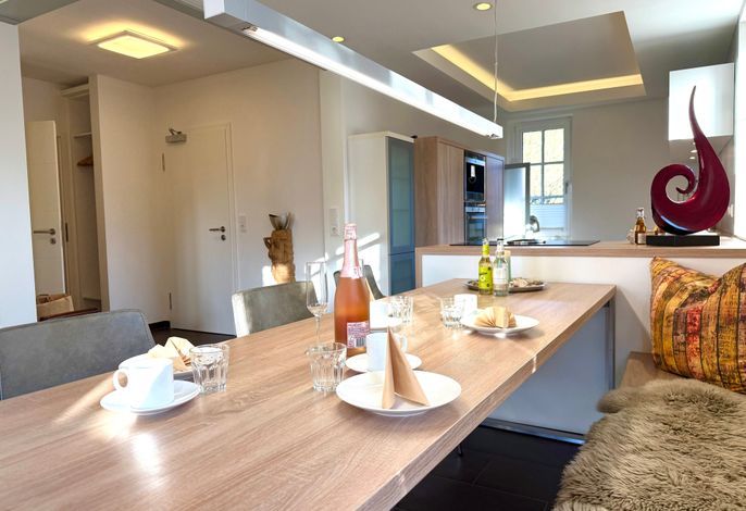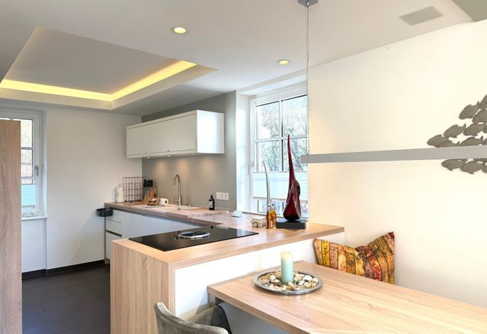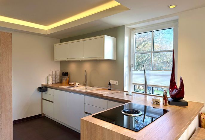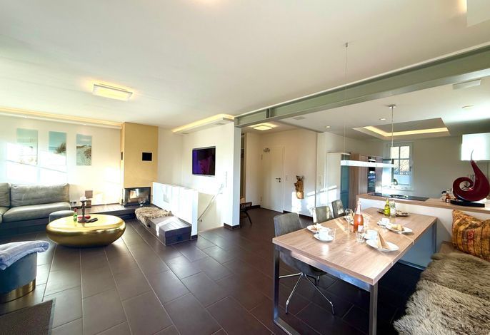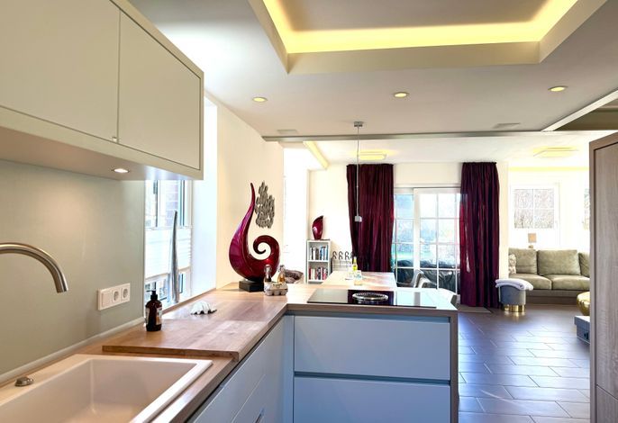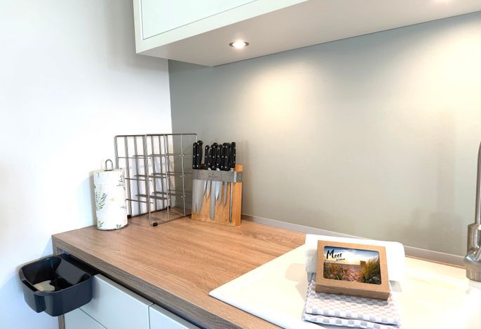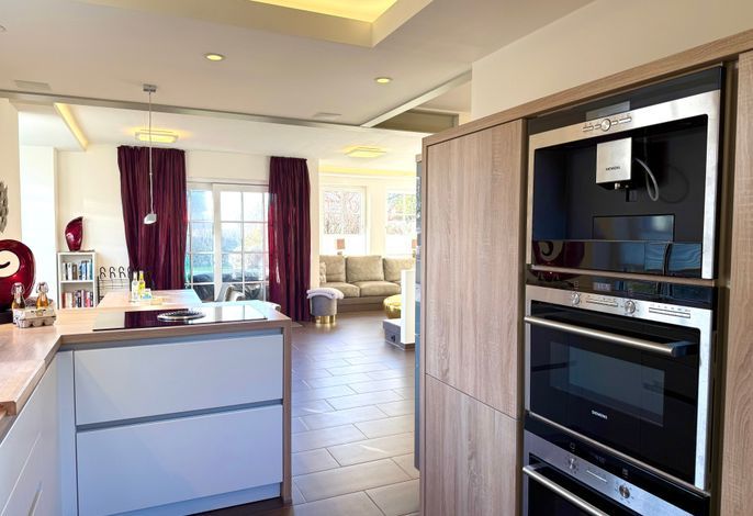 Dazu gehören unter anderem eine moderne Küche mit Spülmaschine, Kaffemaschine und alle wichten Küchenutensilien.
