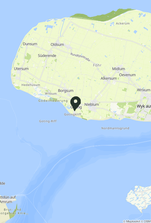 Das Ferienhaus befindet sich in einer ruhigen Lage, nur ca. 2 km von einer Einkaufsmöglichkeit und dem Ortszentrum entfernt. Der Strand ist ebenfalls nur ca. 300 m entfernt und lädt zu ausgiebigen Spaziergängen an der Nordsee ein. Auch der Golfplatz ist mit einer Entfernung von ca. 4,8 km gut zu erreichen. Erleben Sie einen erholsamen Urlaub im Goting-Idyll in Nieblum-Goting.