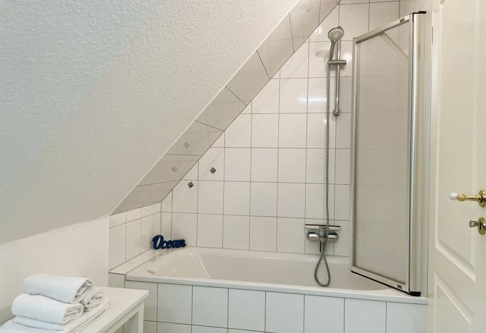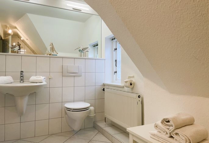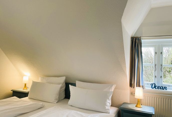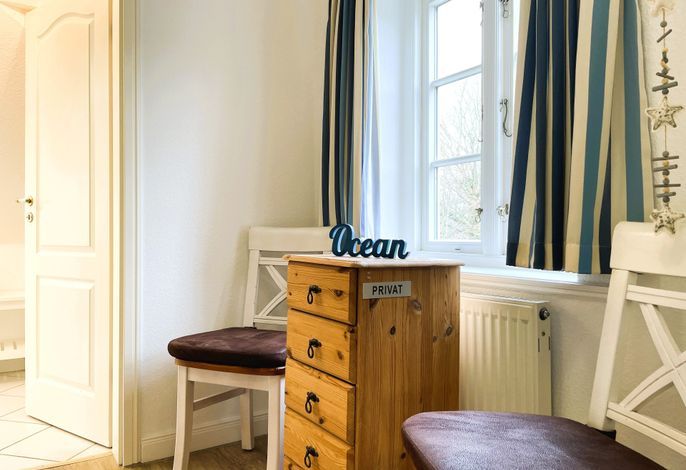 Der Bäcker befindet sich ebenfalls in fußläufiger Entfernung. Direkt hinter dem Haus befindet sich ein Waldstück, dass zum Spazierengehen einlädt. Kinder werden sich an der gemeinschaftlich nutzbaren Spielecke mit Klettergerüst, Schaukel und Sandkasten erfreuen und können in der näheren Umgebung zwei weitere Spielplätze erkunden oder Sie machen einen Waldspaziergang zum Abenteuerspielplatz Löwenhöhle. Von der Strandstraße erreichen Sie des Weiteren auch die Inseldörfer mit PKW oder Rad gut, die viele Angebote bereithalten sei es der Hofladen in Alkerum, das beliebte Café Stellys Hüs in Oldsum oder die Lembecksburg in Borgsum. Die Wyker Innenstadt erreichen Sie mit dem Fahrrad in 15 Minuten, die zum Bummeln einlädt. Der PKW-Stellplatz befindet sich direkt vor der Tür.