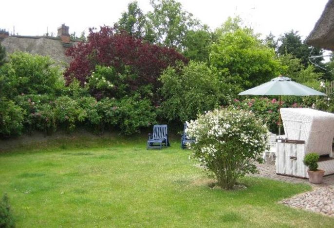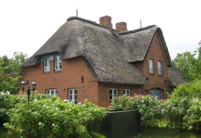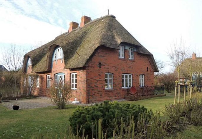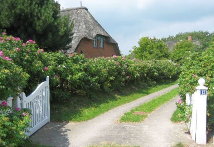 Die exklusive Haushälfte unter Reet liegt am hinteren Ende einer absolut ruhigen Stichstrasse im bevorrzugten Ortsteil Goting, in unmittelbare Nähe zum Meer und dem Goting-Kliff.