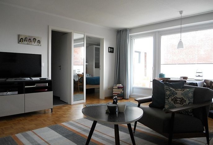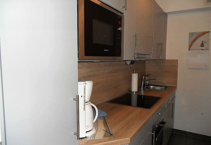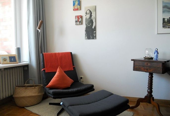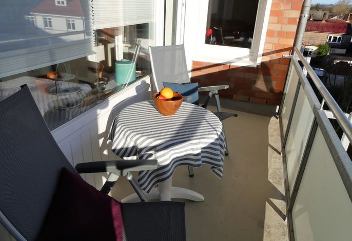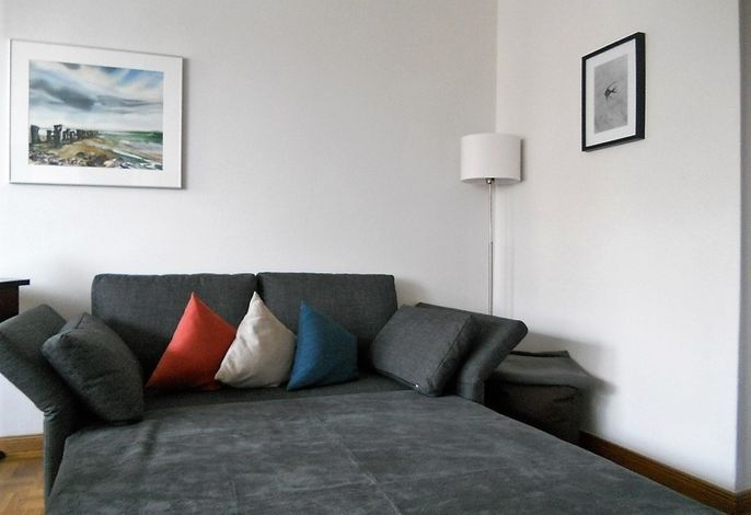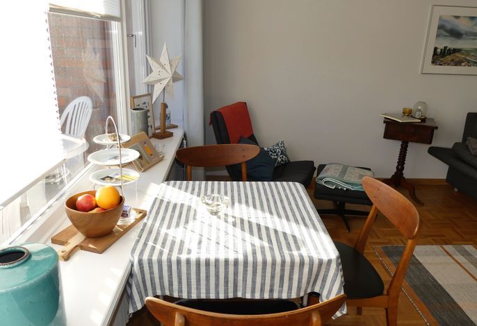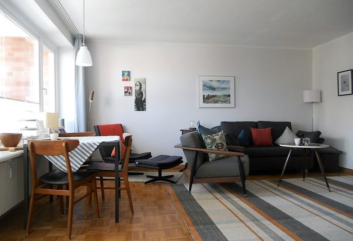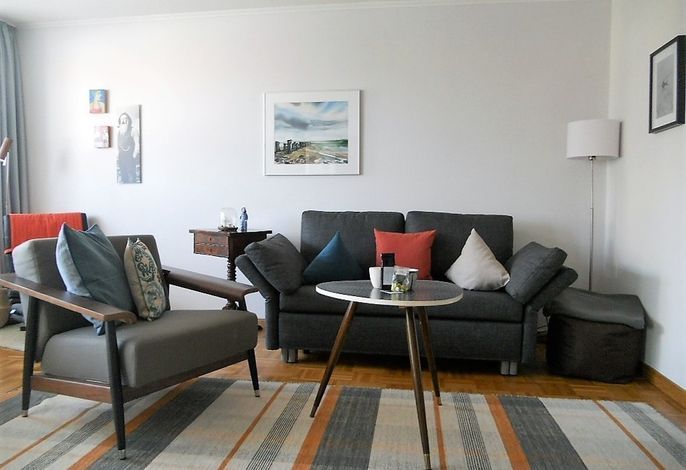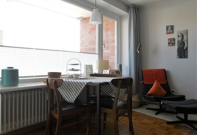 Nur wenige Gehminuten vom Südstrand entfernt befindet sich das Domizil Gmelinstraße 8. Die Eigentümer haben viel Wert auf hohen Komfort gelegt, der sich mit Modernität und Charme harmonisch verbindet. Der Wohnraum mit integrierter Essgruppe ist einladend hell und verfügt über WLAN, einen Flachbild-TV, Musikanlage (mit USB-Port), Telefon und wirkt durch die vielen hübschen Accessoires und die hochwertige Einrichtung sehr behaglich. Von hier aus gelangen Sie auf den Balkon mit Fliegengittertür, der herrliche Sonnenstunden verspricht. Das Schlafzimmer mit Doppelbett (180x200 cm) kann durch ein Rollo zusätzlich verdunkelt werden. Möchten Sie getrennt schlafen, befindet sich im Wohnzimmer eine bequeme Schlafcouch (130x205 cm). Die separate Küche mit kleinem Backofen, Mikrowelle, Geschirrspüler, eine Senseo-Kaffeemaschine und Wasserkocher ist gut ausgestattet, so dass das Kochen Freude macht. Probieren Sie doch vielleicht die friesischen Gerichte aus und genießen Sie diese am gemütlichen Essplatz, der sich direkt an der großen Fensterfront befindet. Das kleine Bad mit Dusche ist funktional und fein. Das Haus verfügt über einige Parkplätze und im Untergeschoss des Hauses finden Sie einen Waschraum mit Waschmaschine und Trockner, die gegen eine geringe Gebühr genutzt werden dürfen. Ihre Wohnung erreichen Sie bequem mit dem Aufzug oder Sie nutzen die Treppen. In der näheren Umgebung befindet sich der Südstrand mit einem beliebten Strandcafe, einem Schlachter und Bäcker, dem Pfannkuchenhaus, einigen Restaurants und ein kleiner Edekaladen. Nur wenige Schritte entfernt erreichen Sie schon das Meer und können den Föhrer Strand, die kreisenden Möwen über dem Wasser und die belebende Nordseeluft genießen. Schon jetzt verspricht das Domizil Gretchens To Huus herrliche Urlaubstage..