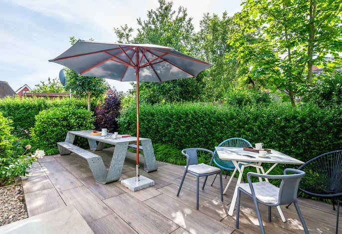 Der eingewachsenen Garten mit Mobiliar sowie ein Parkplatz und ein Schuppen stehen für Sie zur Nutzung bereit.