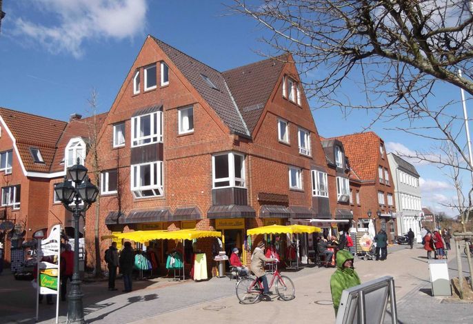 Fußläufig erreicht man schnell die Flaniermeile am Sandwall, wo auch der Badestrand ist. Hier finden sie kleine Läden zum Stöbern, zudem laden einige Cafés und Restaurants zum Verweilen ein. Von hier aus haben Sie einen wunderschönen Blick auf die Halligen und das Wattenmeer.