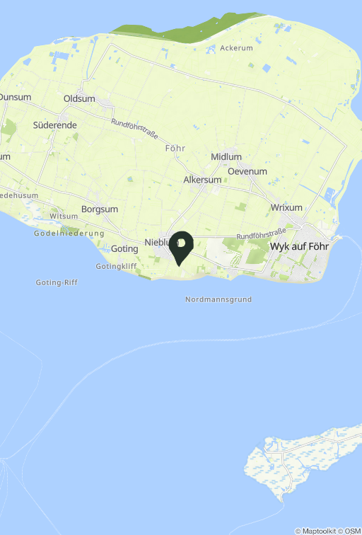 Das Haus liegt im schönen Inseldorf Nieblum auf der Insel Föhr in der letzten Baulinie vor dem Orts- bzw. Badestrand von Nieblum.