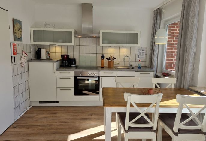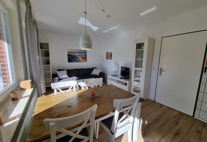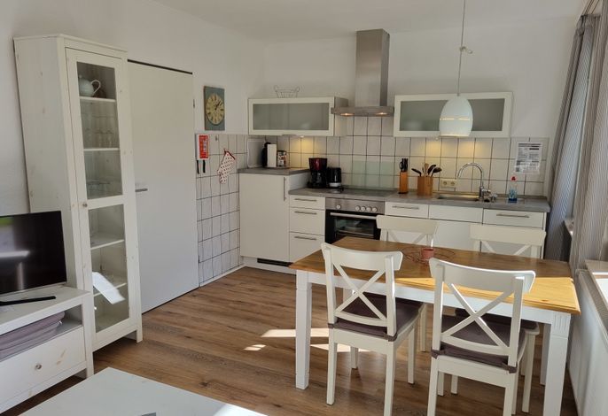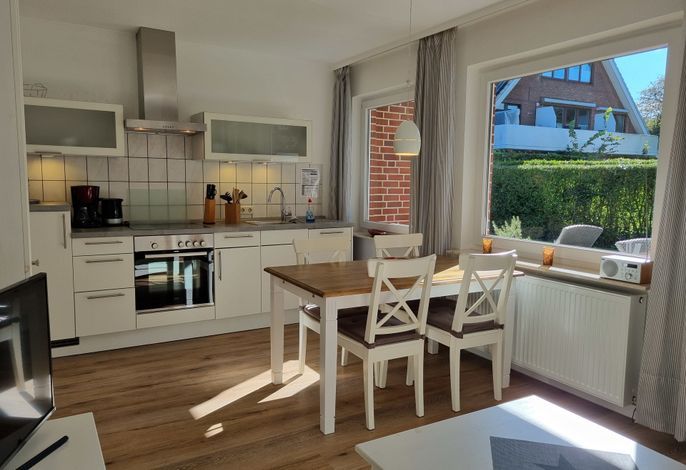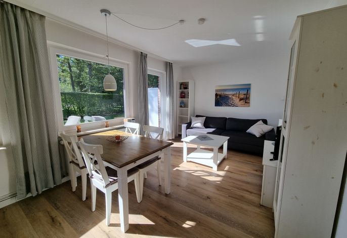 Diese schöne und moderne 45 qm Wohnung in der Nähe des Südstrandes befindet sich in einer Bungalowsiedlung mit 8 Einheiten und einem Haupthaus mit 4 Wohneinheiten. In der offenen und gut ausgestatteten Küche finden sie ein Backofen, Kühlschrank mit Gefrierfach und eine Geschirrspülmaschine. Der gemütliche Essbereich im Wohnzimmer bietet Platz für 4 Personen und die moderne Wohnlandschaft mit Schlaffunktion 1,60 x 2,00m lädt zum Relaxen ein. Ein Fernseher, Radio und WLAN sind vorhanden. Zur Wohnung gehört eine möblierte Terrasse. Im gemütlichen Schlafzimmer befindet sich ein Doppelbett 1,80 x 2,00 m und ein Kleiderschrank. Bettwäsche und Handtücher sind für 25 Euro pro Person inklusive. Im Badezimmer befindet sich ein WC, Waschbecken, Dusche und ein Föhn.