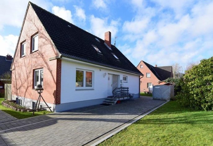 Die helle, freundliche Obergeschosswohnung ist 80m² groß und bietet Platz für 2 bis 5 Personen. Es erwartet Sie eine geräumige Ferienwohnung mit einer separaten Küche, einem gemütlichen Wohnzimmer mit einer Essecke, drei Schlafzimmern und einem Duschbad. Ein schöner Gartenplatz mit Strandkorb lädt zum Entspannen ein. Ihre Fahrräder können untergestellt werden und es steht ein Stellplatz für Ihren PKW zur Verfügung.