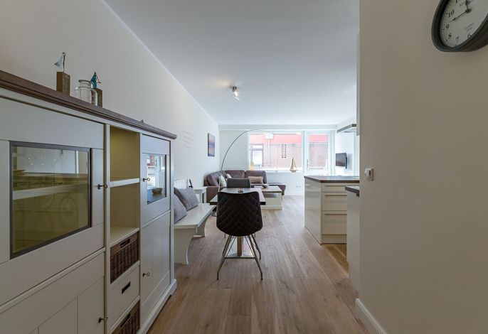 Wohnen Sie direkt am Sandwall in Wyk ?- in der ersten Reihe am Wasser. Hier befindet sich eine Wohnanlage mit mehreren Einheiten. Ihre Wohnung mit Balkon und Meerblick befindet sich im ersten Stock. Von hier genießen Sie einen traumhaften Blick direkt auf die Nordsee. Morgens zum Kaffeetrinken, Nachmittags zur Teatime und Abends erleben Sie die Abendstimmung am Meer..Mit nur wenigen Schritten sind Sie am Sandstrand und am Wasser oder auch an der Promenade in Wyk mit seinen vielen Cafes, Geschäften und Restaurants. Bummeln, Shoppen und leckere Köstlichkeiten genießen - alles mit Meerblick ?- wo gibt es das schon? Die Wohnung bietet Platz für drei Personen. Der Wohn-Essebereich mit offener Küche läßt keine Wünsche offen. Sie werden sicherlich einen unvergesslichen Urlaub in diesem Wohlfühlappartement verbringen..