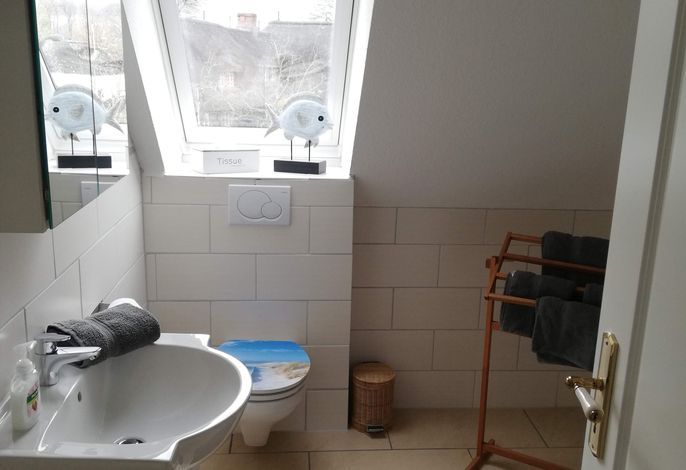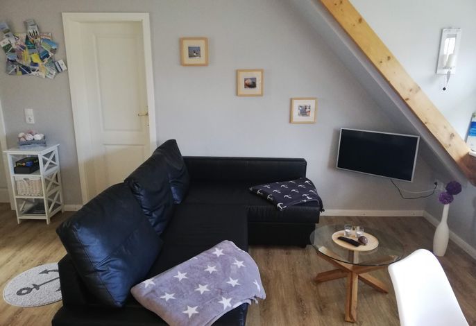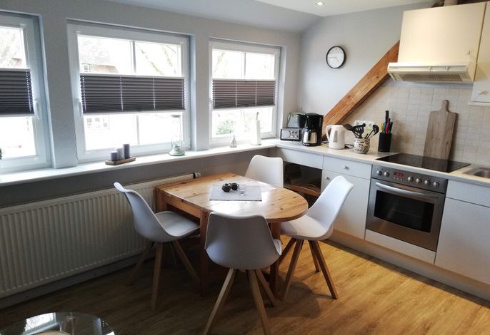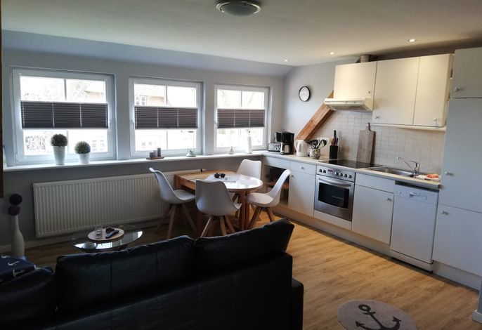 Die Nichtraucherwohnung mit ca. 50 m² Wohnfläche, verfügt über einen kombinierten Wohn- Essbereich mit Einbauküche. Die Küche ist voll ausgestattet mit Geschirrspüler, Backofen, Kühlschrank mit Gefrierfach, Kaffeemaschine, Toaster und Wasserkocher. Ein Hochstuhl, für unsere kleinen Gäste, stellen wir Ihnen gerne kostenfrei zur Verfügung! Entspannen und Ausschlafen können Sie im Schlafzimmer mit Doppelbett oder einem weiteren Schlafzimmer mit zwei Einzelbetten! Ihnen steht ein hell gefliestes Duschbad mit Tageslicht zur Verfügung! Zu dem Haus gehört ein großer Garten mit einer eigenen Sitzecke.