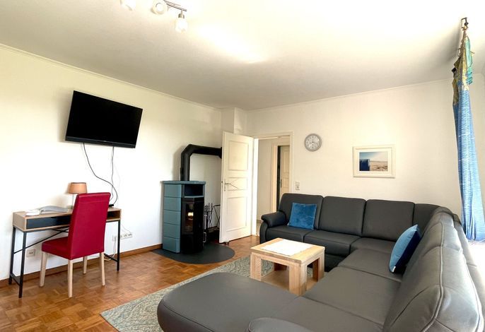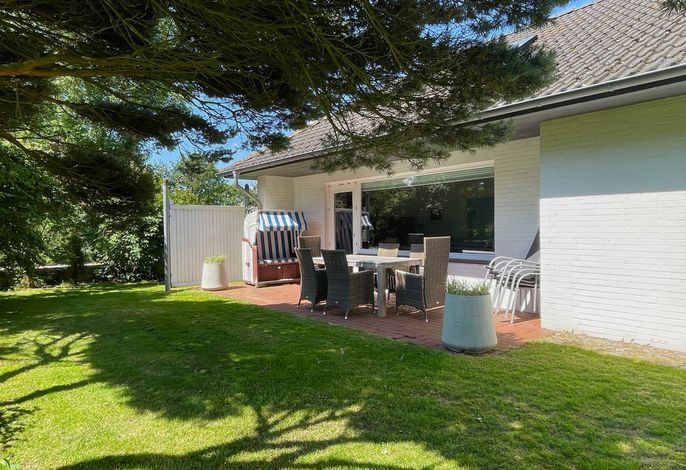 Freistehendes Ferienhaus zur Alleinbenutzung mit Kachelofen, Garten, Garage und Saunahaus, Ortsrand von Nieblum. Ausstattung: WLAN, SAT-TV, Bluetooth-Stereoanlage, Garage, Saunahaus, Garten, Strandkorb. Drei Schlafzimmer...